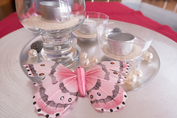 Da auch Kerzen immer noch zur Deko gehören wurde meine Orchideenvase durch ein Kerzenteller Arrangement ergänzt. Die Teller hab ich nur in Silber, also watt mutt, datt mutt.