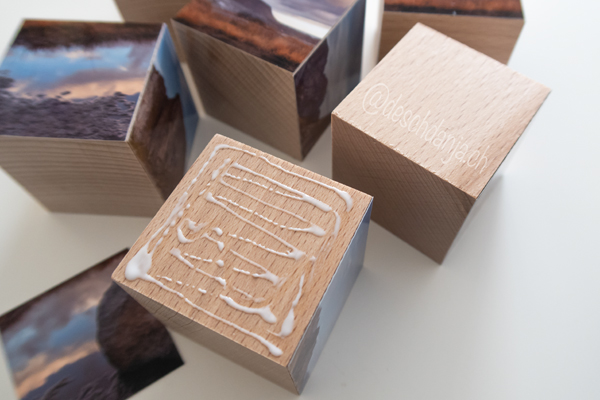 3. FOTOSCHNIPSEL AUF DIE HOLZWÜRFEL KLEBEN