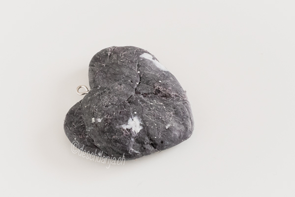 Konkret wolle ich den Effekt von Stein nachahmen und habe aus meinem Fusselfimo einen Herzanhänger in Steinoptik geknetet.