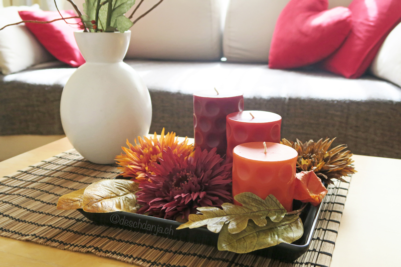 Für ein gelungenes Herbsfeeling fehlt eigentlich nur noch eine schöne Tasse heisse Schokolade, Kaffe geht auch und eine schön grosse Kuscheldecke. Dann kann man es sich auf dem Sofa so richtig gemütlich machen und die herbstlichen Sonnenstrahlen im kuschligen Wohnzimmer geniessen.