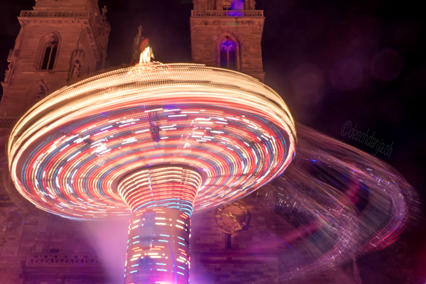 Mein erster Besuch in diesem Jahr hat mich aber aus ganz anderen Gründen ins Gewimmel geführt: Die Freude an der Fotographie. Denn nachdem wir schon auf unserer Lofotenreise Erfahrungen in der Nachtfotographie und mit Langzeitbelichtung sammeln konnten, wollten wir dieses Wissen auch mal im heimischen Basel testen und da gibt es wohl kaum eine bessere Gelegenheit als die vielen bunten und grellen Lichter der ganzen Messebahnen.