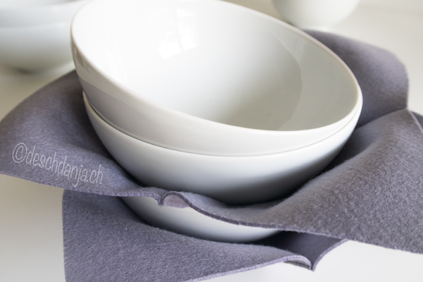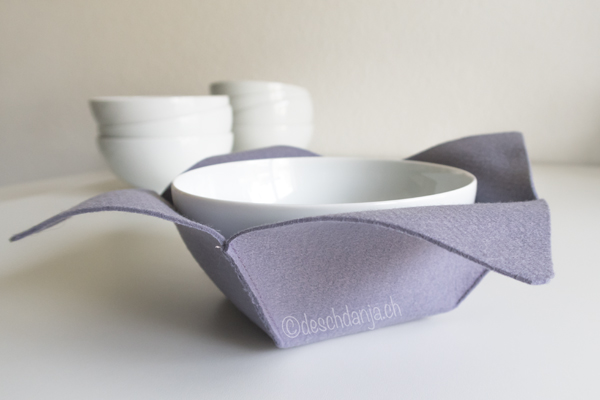 Habt ihr euch auch schon mal an einer heissen Schüssel die Finger verbrannt? Meine bisherige Lösung dieses Hitzeproblems bestand ja darin, dass ich schlicht und einfach ein Geschirrtuch um die heisse Schale gelegt habe, denn so lässt sich diese gut transportieren oder auch mal auf dem Schoss halten.