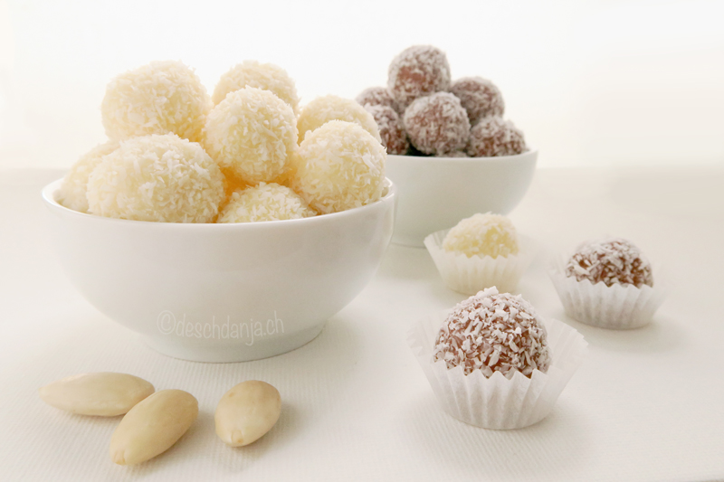 Ein einfaches Rezept mit Suchtgefahr für alle Naschkatzen: Raffaelos! Einmal klassich in weiss und einmal als braune alternative mit Milchschokolade.