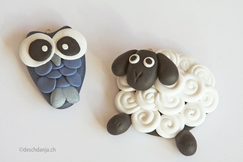 Schaf und Eule aus Fimo