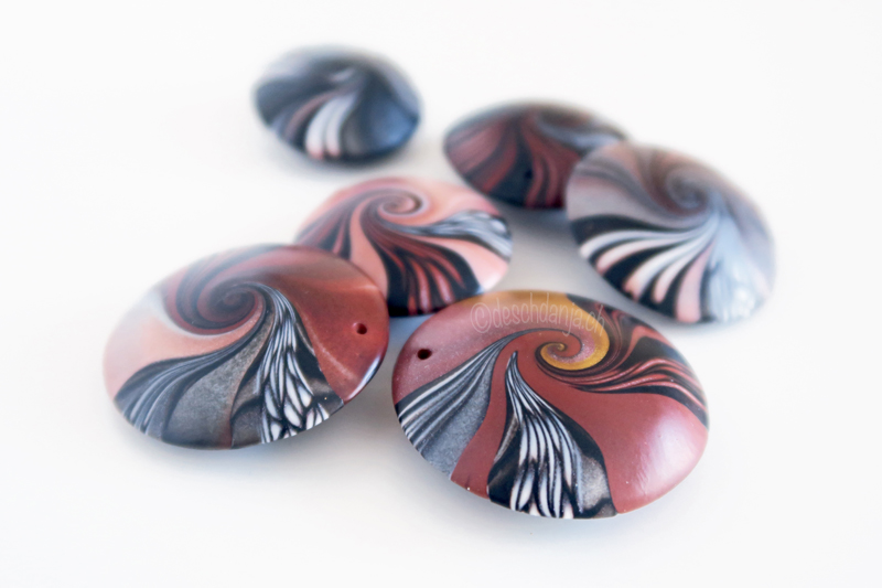 Achtung Suchtgefahr! Wenn man diese schwindelerregende Fimo Swirl Technik mal raus hat, kann man kaum wieder damit aufhören. Jedes Schmuckstück ist ein absolutes Unikat und eins ist schöner als das andere. Ich bin ganz verliebt.